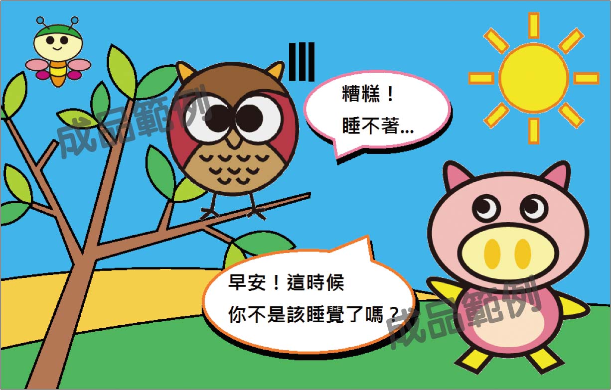 素材檔 - 背景圖、貓頭鷹、太陽、小豬、小蜜蜂